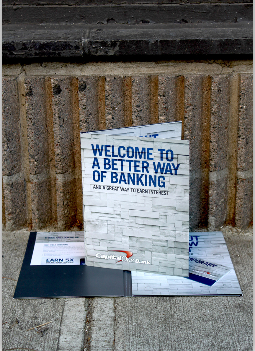 For several years now, I've worked on various projects for Capital One Bank. Anything and everything inside their branches from kits, to posters, to displays and brochures. These are just a few samples.